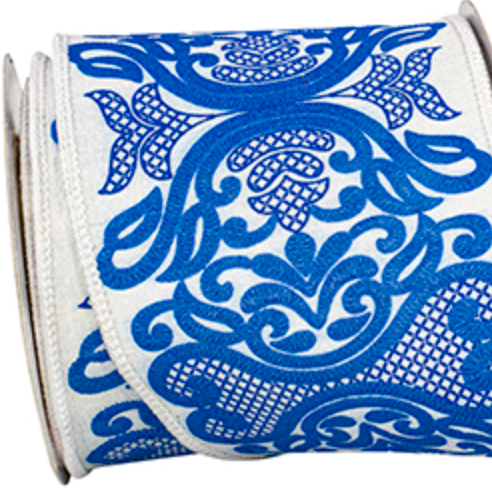 Regal Filigree Chinoiserie Printed Dupioni Wired Edge Ribbon