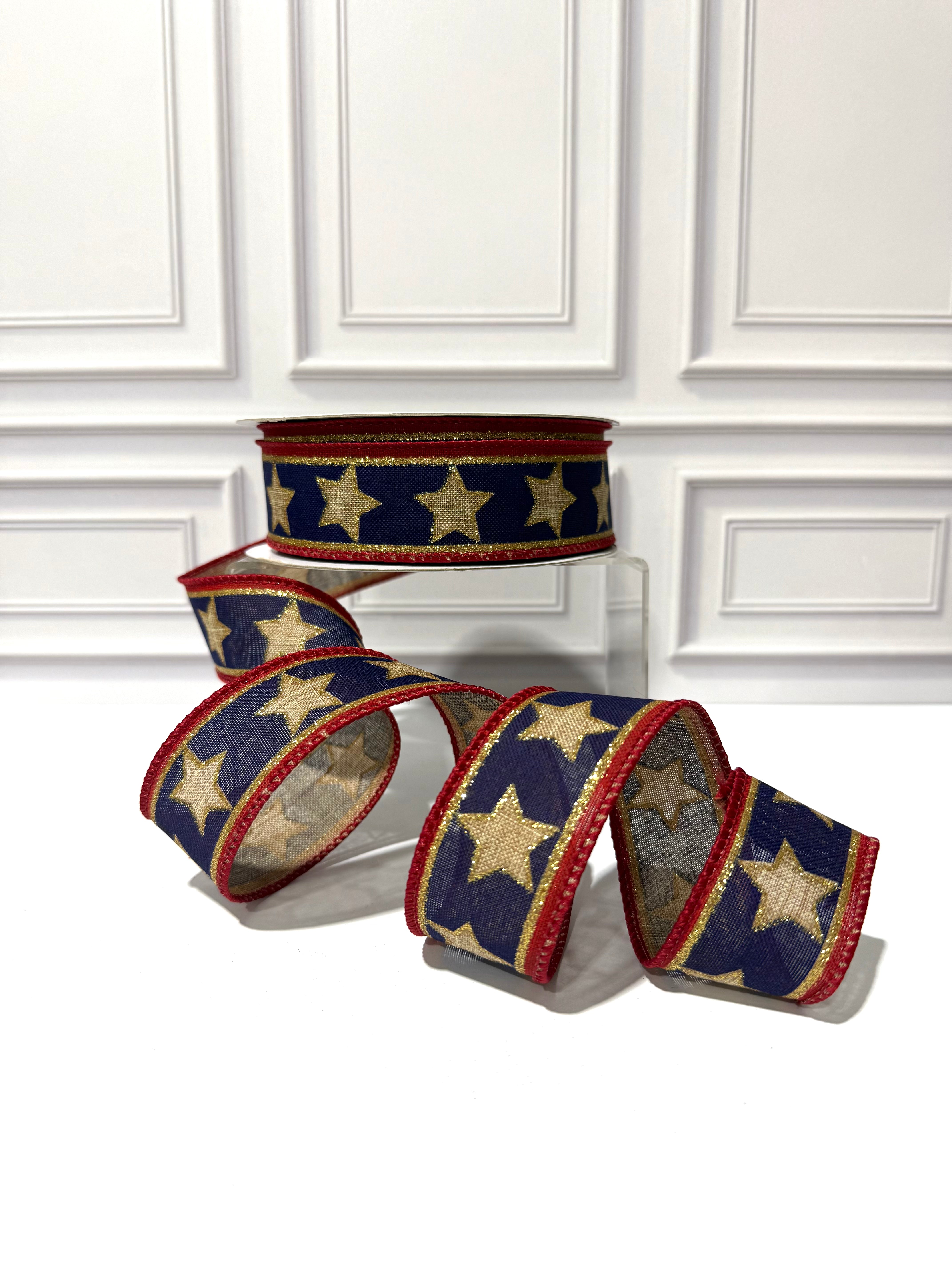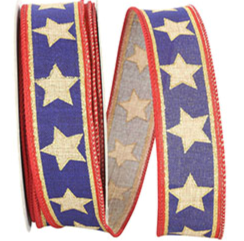 Linen Stars and Stripes Wired Edge Ribbon