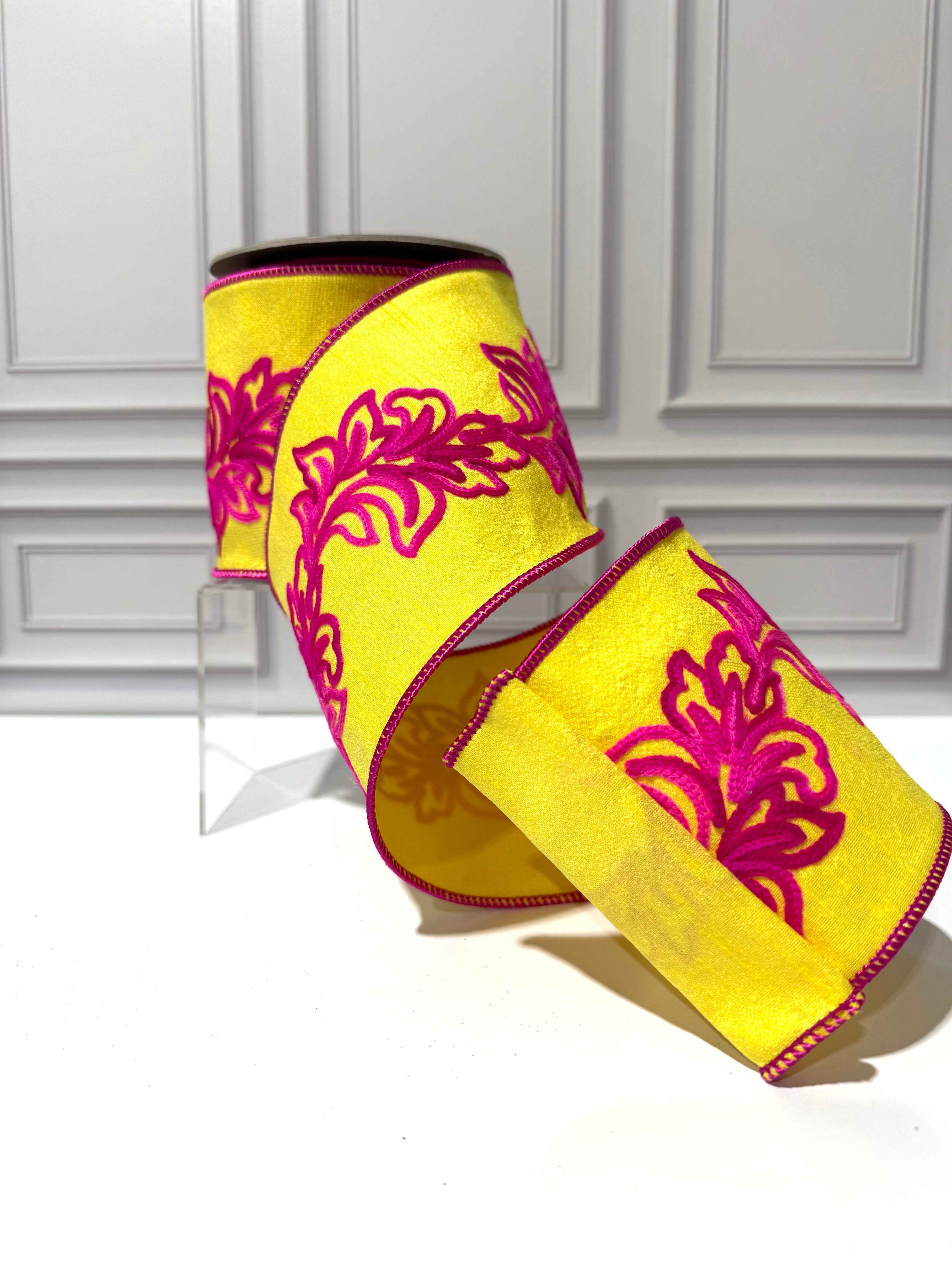 Filigree Embroidery Leaf Vine Dupioni Deluxe Wired Edge Ribbon