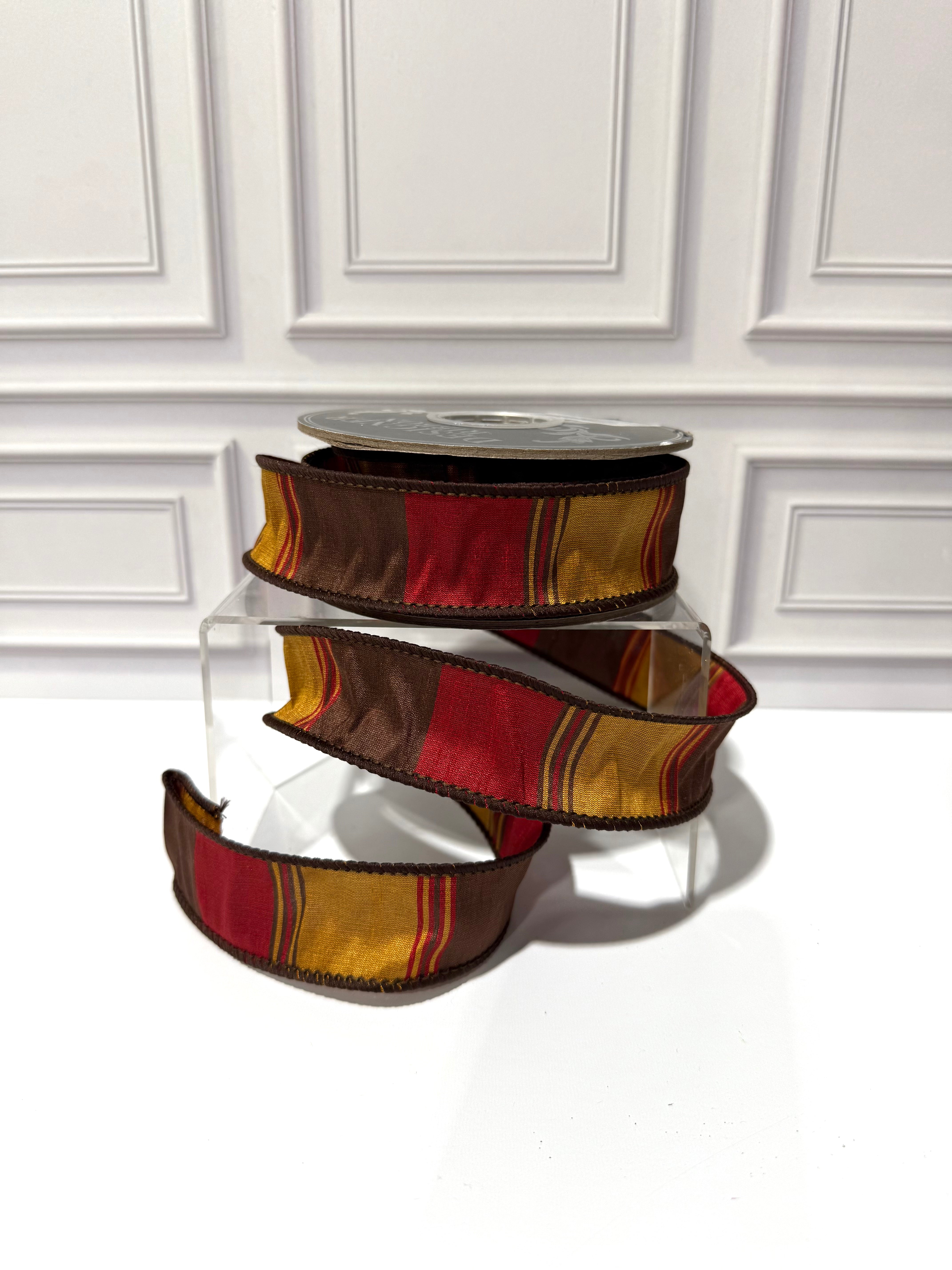 Stripe Dupioni Dusk Wired Edge Ribbon