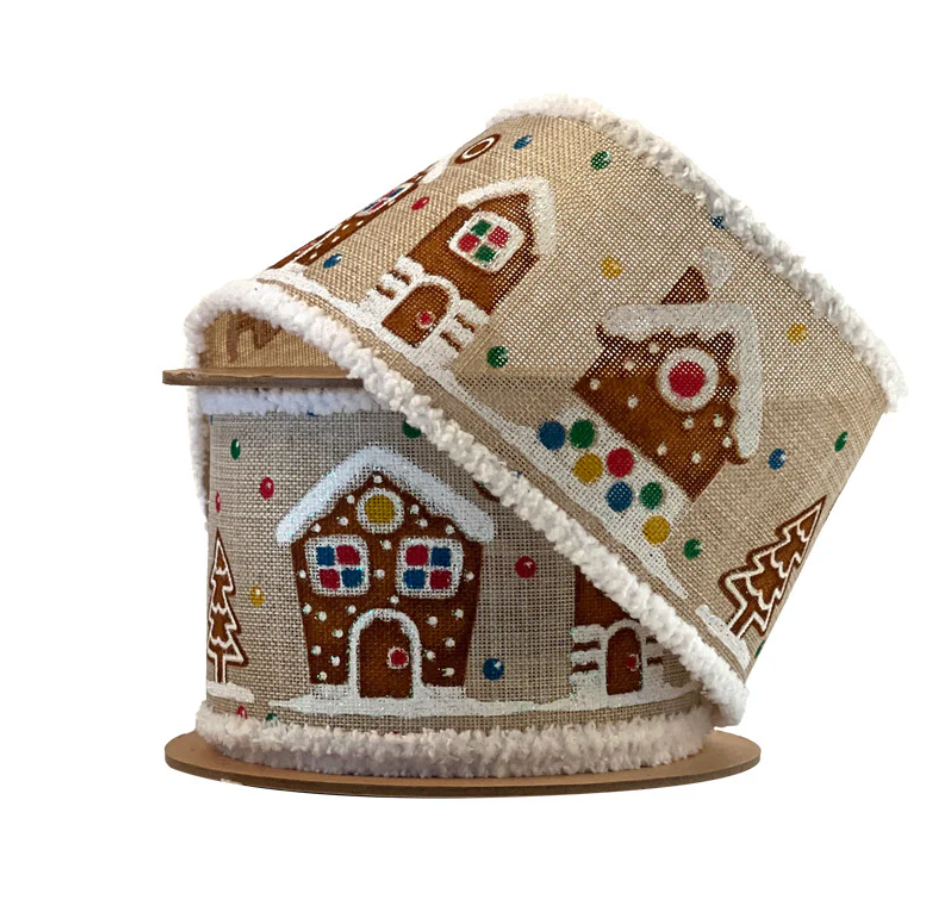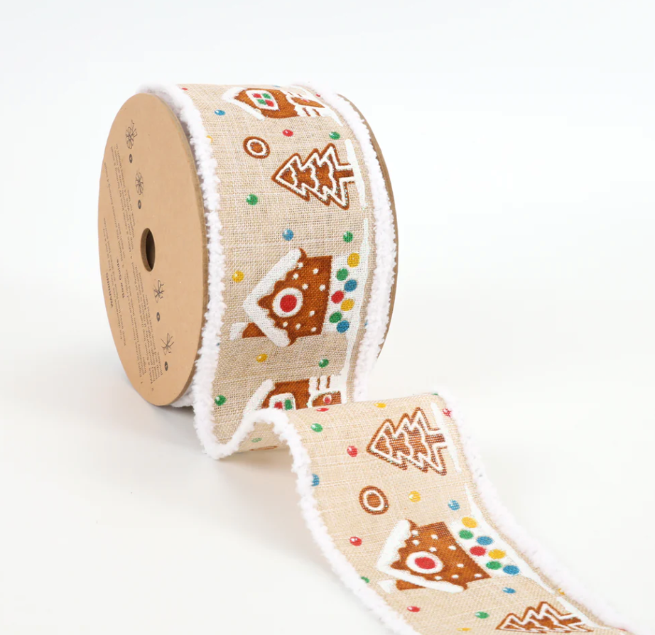 2 1/2" Wired Ribbon | "Gingerbread House" Natural/Multi | 10 Yard Roll