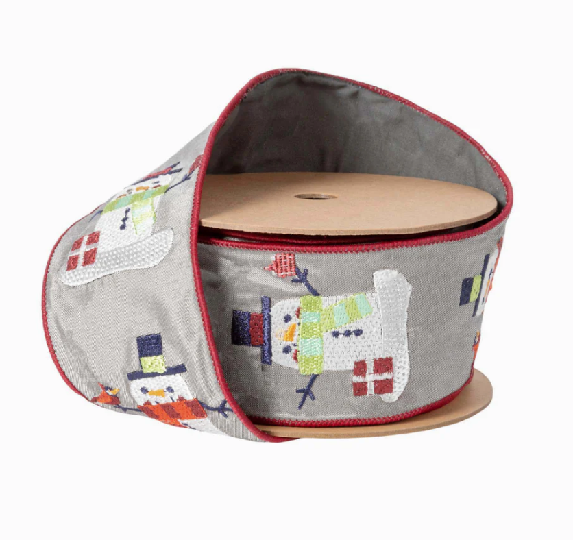 2 1/2" Wired Ribbon | Embroidered Snowman | 5 Yard Roll