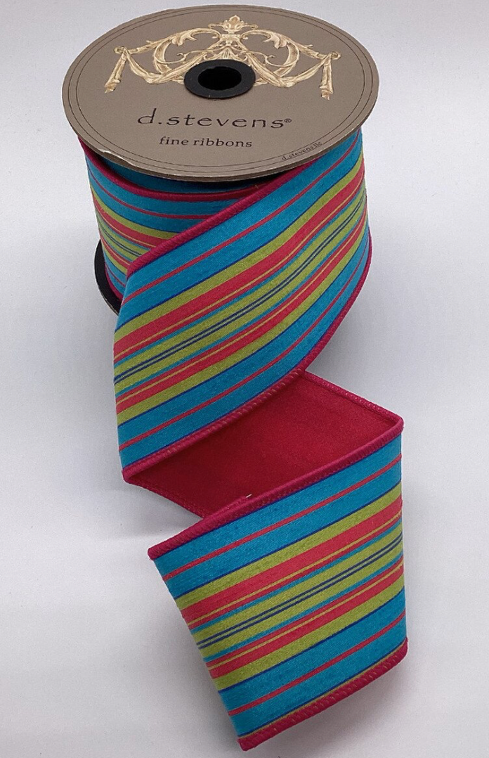 3" Dupion Lime, Hot Pink, and Teal Striped