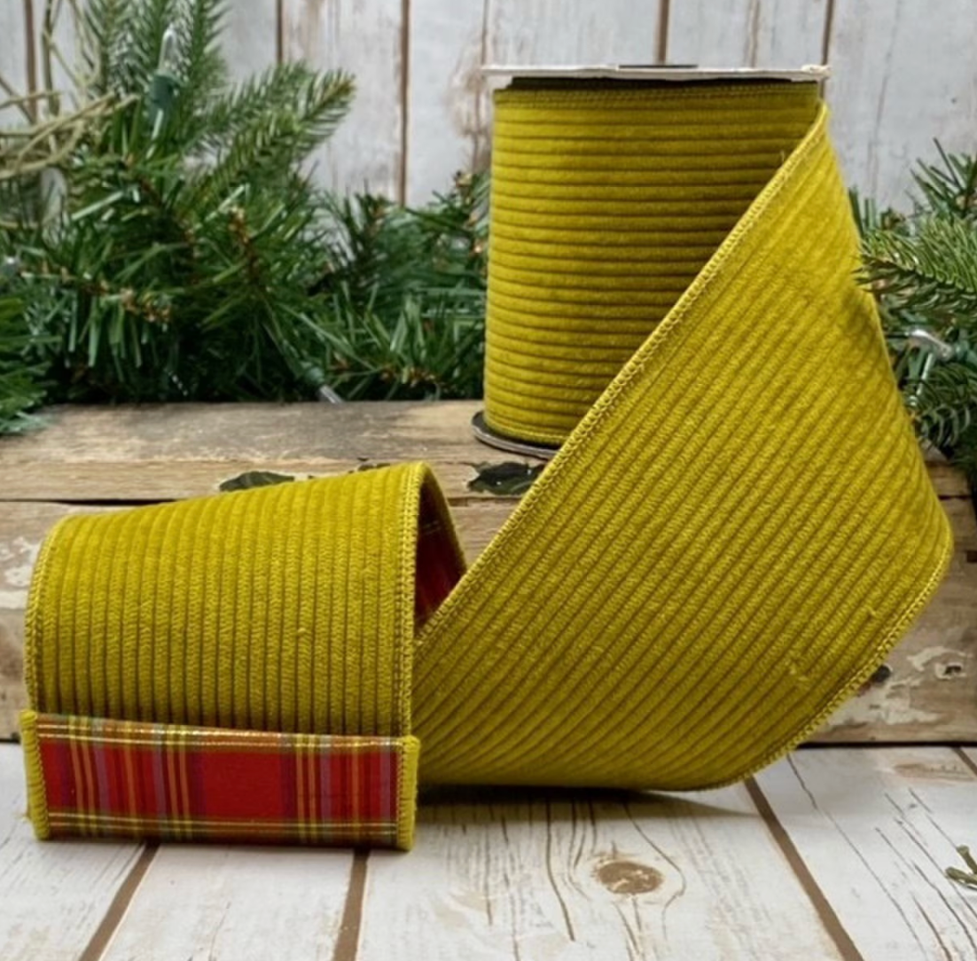 4" Olive Green Corduroy Plaid Back Ribbon
