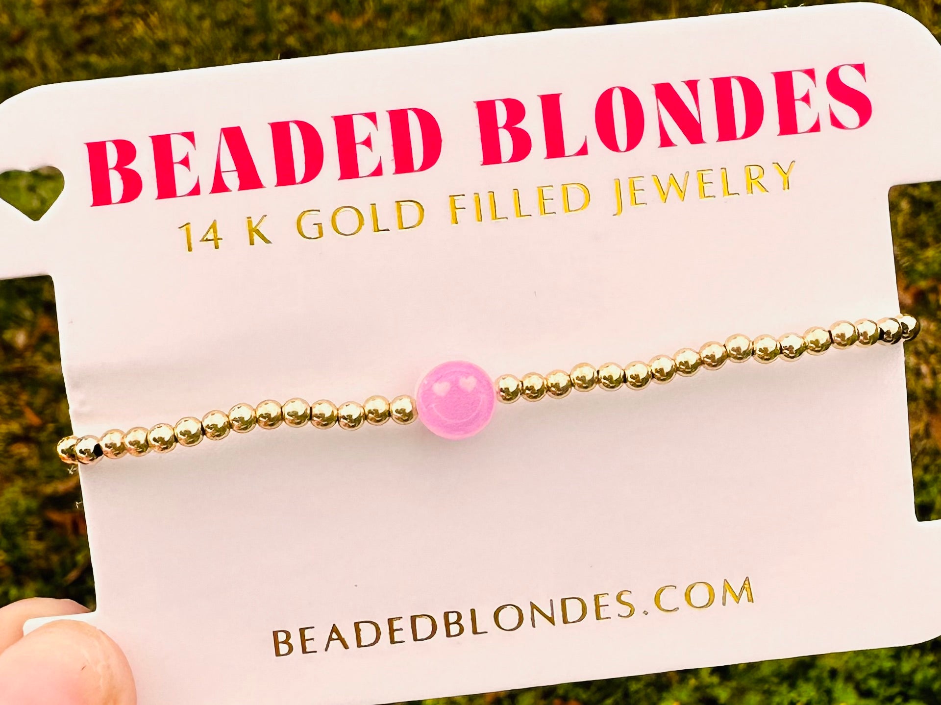 Add a cute little pink smiley face to the rest of your set with this fun bracelet.