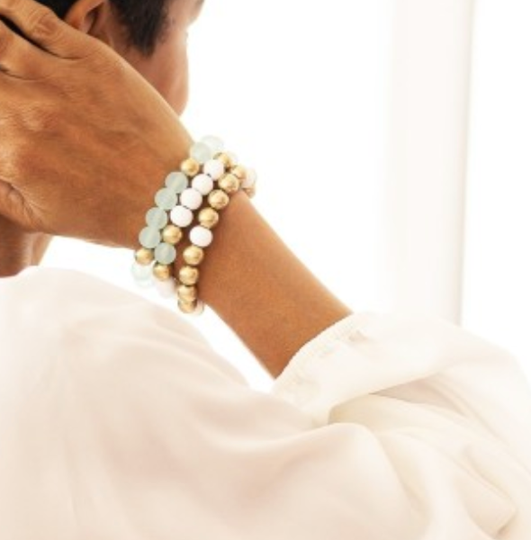 This bracelet stack will quickly become your go-to accessory, it features an eclectic set of beaded bracelets that will perfectly pair with your favorite outfits.