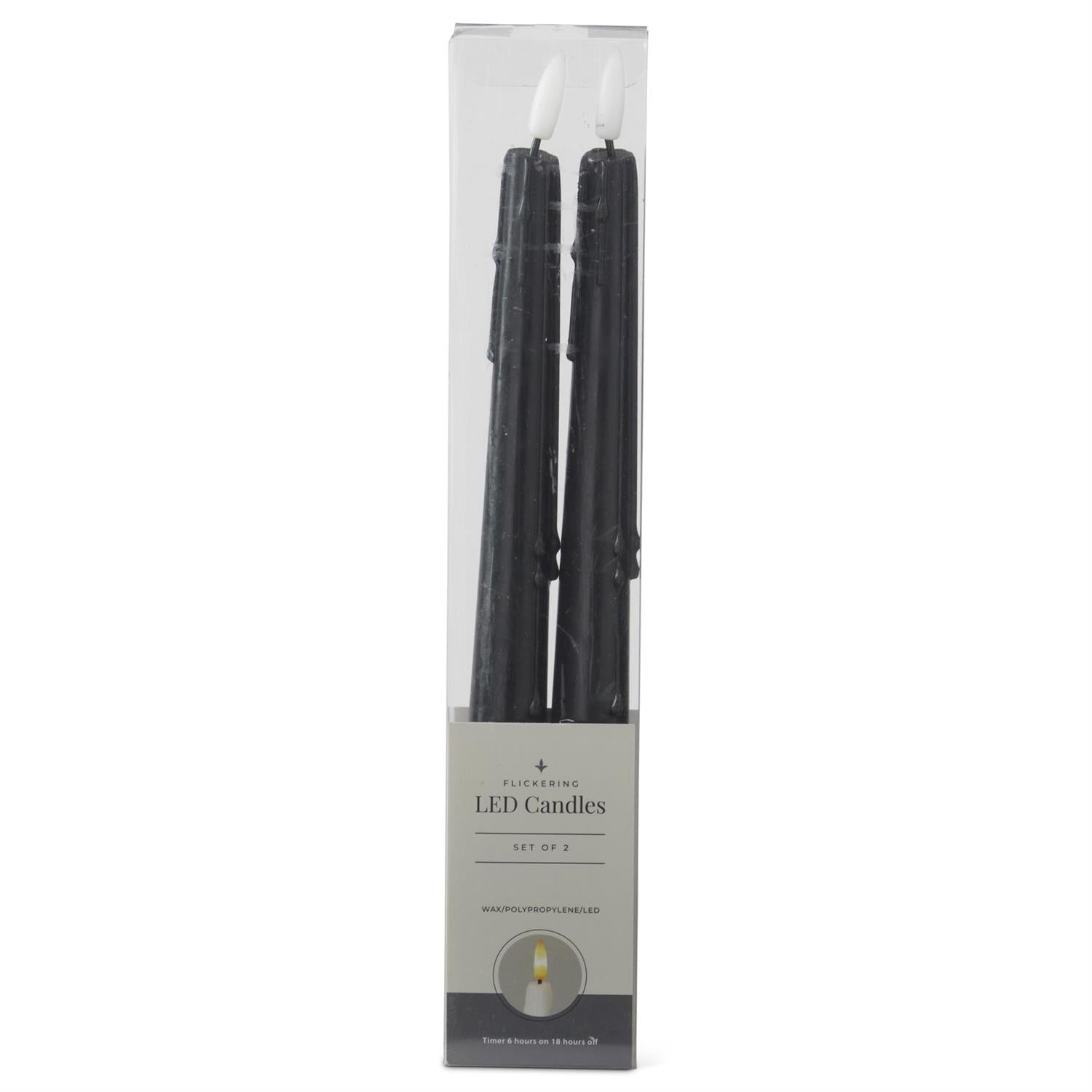 Brighten your space with this playful set of two 11.5-inch black LED drip candles. Featuring a built-in timer, they flicker with cozy, mess-free glow, all without the worry of real flames. Perfect for setting the mood during spooky nights or stylish gatherings, these candles bring ambience and ease to your décor.