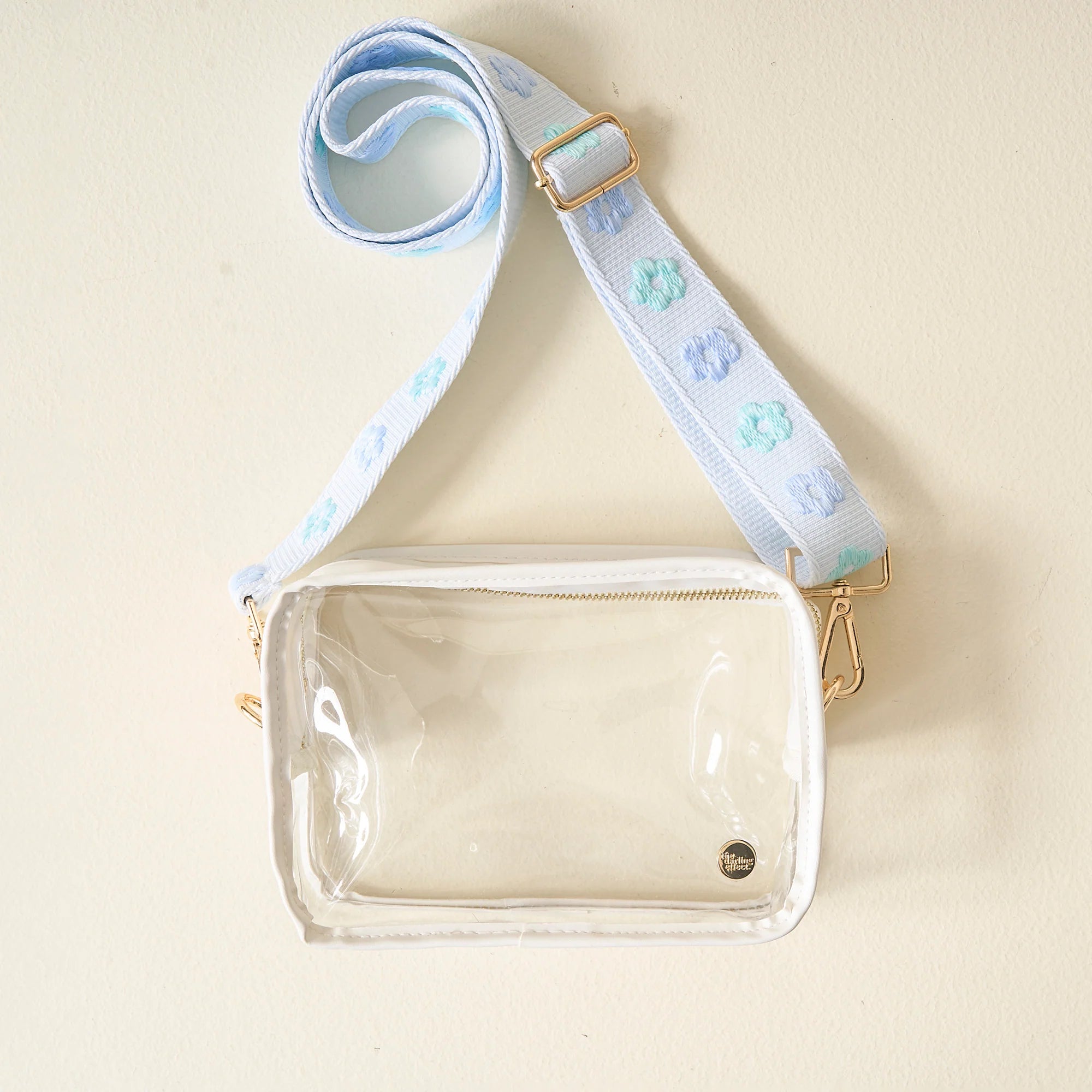 Your new BFF for game day, concerts, festivals, and everyday! Featuring an adjustable embroidered strap, and beautiful floral details, this chic clear structured bag has double hooks on either end. Make a statement and carry everything you need in this darling clear crossbody bag!