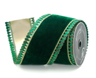 Gorgeous velvets lined with pear-shaped gems. Ribbon is constructed with thick, wired edge and a secondary fabric to provide shape and structure. 4" x 5yards