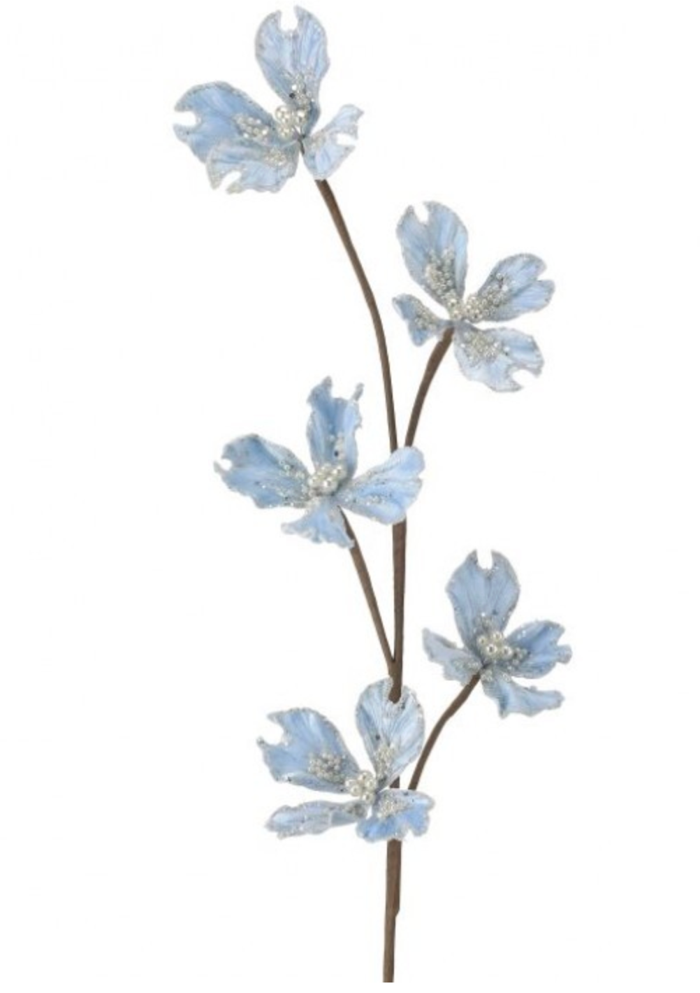 36" Glitter Dogwood Spray Light Blue