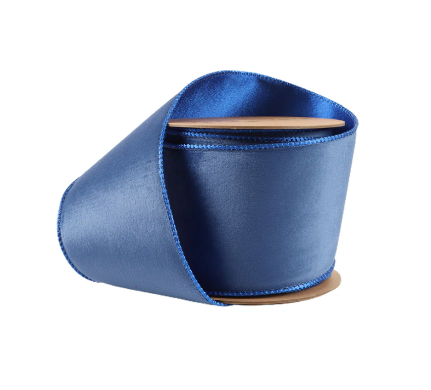 4" Reversible Classic Velvet Wired Ribbon | Electric Blue/Shimmer Blue| 10 Yard Roll