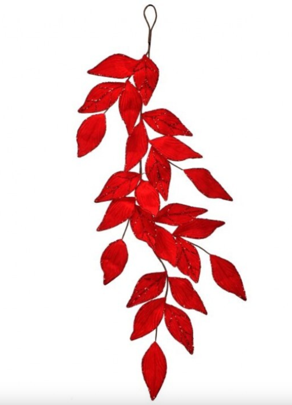 Add a touch of sparkle to your space with this 48" Glitter Veined Velvet Leaf Garland. Soft velvet leaves shimmer with glittery veins, perfect for brightening up parties, mantels, or doorways. Its playful sparkle brings a festive vibe wherever it’s draped!