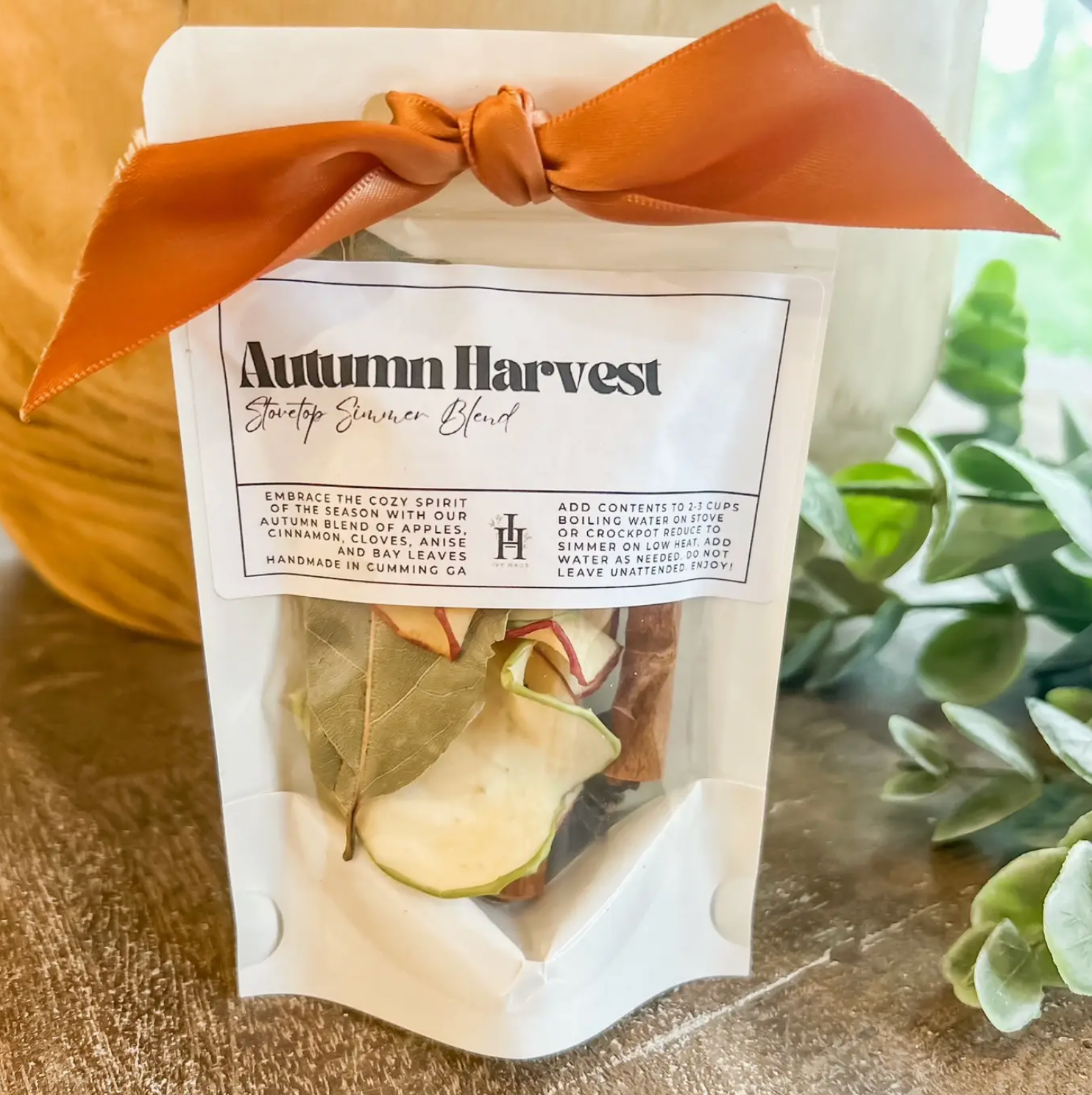 Embrace the cozy spirit of the season with out FALL HARVEST simmer pot blend. A rich, inviting blend that fills your home with the warm scents of apples, cinnamon, cloves, anise and bay leaves. Add a splash of Vanilla or Almond Oil (sold separately) for added warmth.