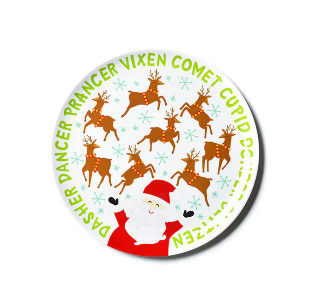 Santa Claus is coming to town! Artfully decorated with a jolly Santa and his loyal reindeer, our reindeer kid's Christmas plate is sure to add holiday cheer to dinnertime. Sturdy melamine makes this plate perfect for sharing Christmas dinner with kids or filling with cookies for Santa to enjoy. Make entertaining this holiday season easy effortless when you serve up something special on this adorable plate.