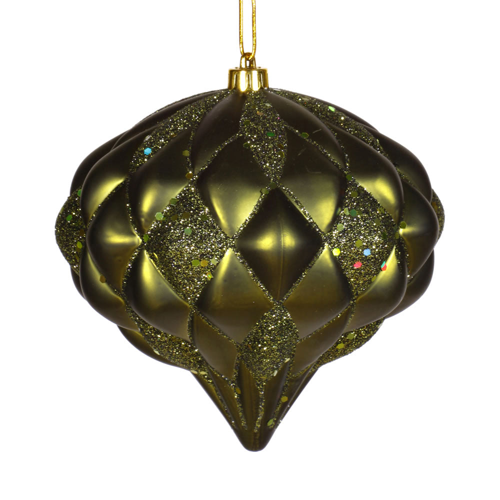 Dark Olive Matte/Glitter Diamond Onion Christmas Ornament