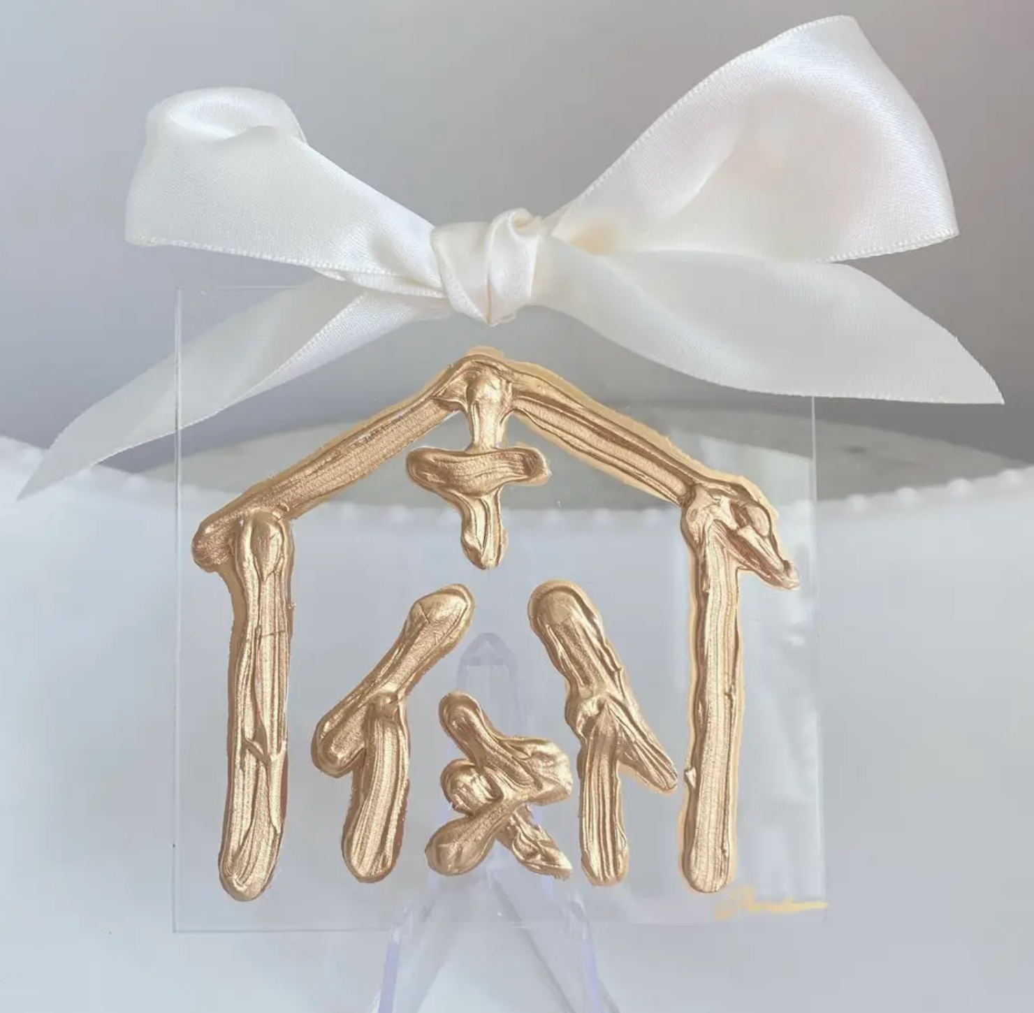 Hand Painted, Textured Acrylic Ornament 4x4, Satin Bow, Hand Signed, stand not included