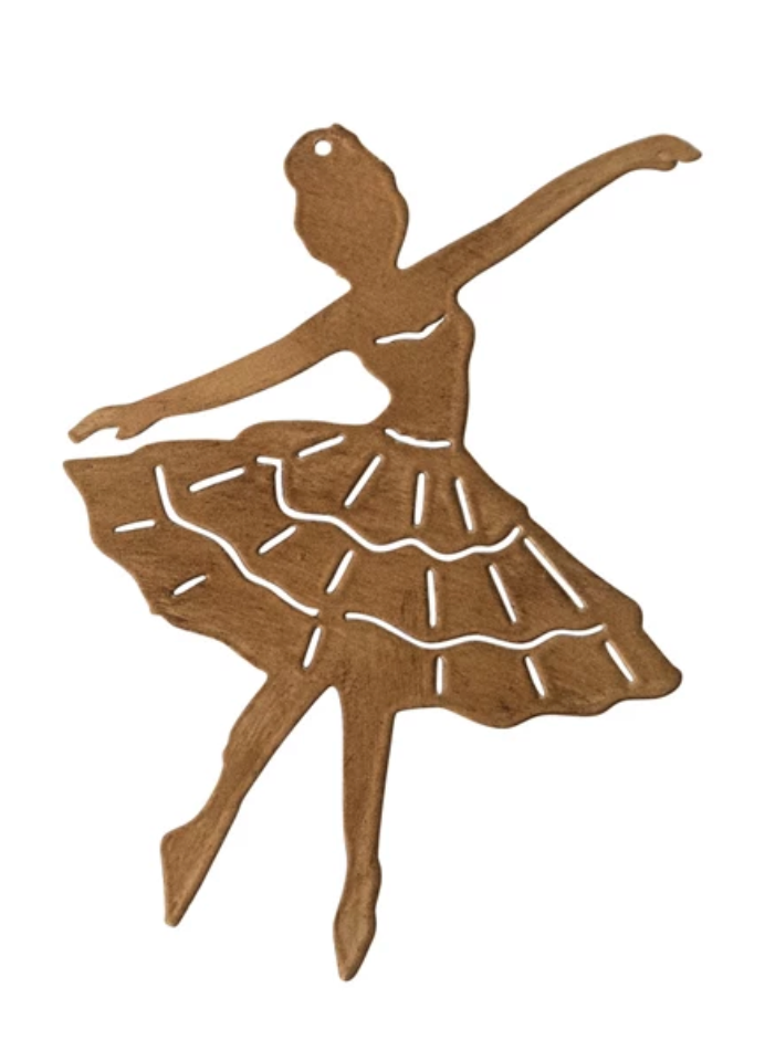 6"H Metal Ballerina Ornament w/ Cut-Outs, Antique Brass Finish