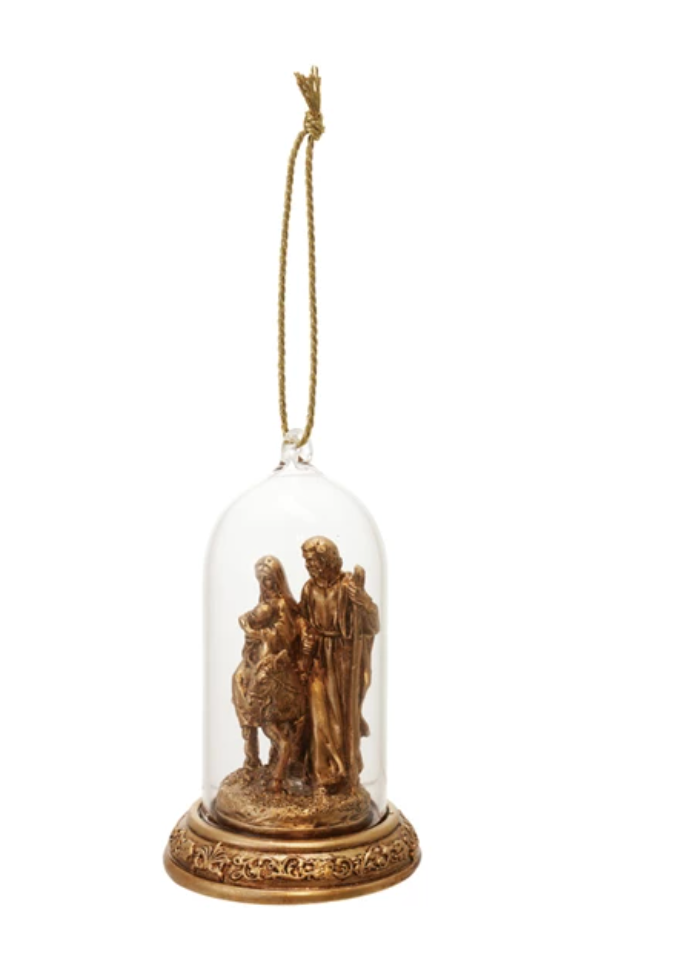 Resin Cloche Holy Family Ornament with LED Light