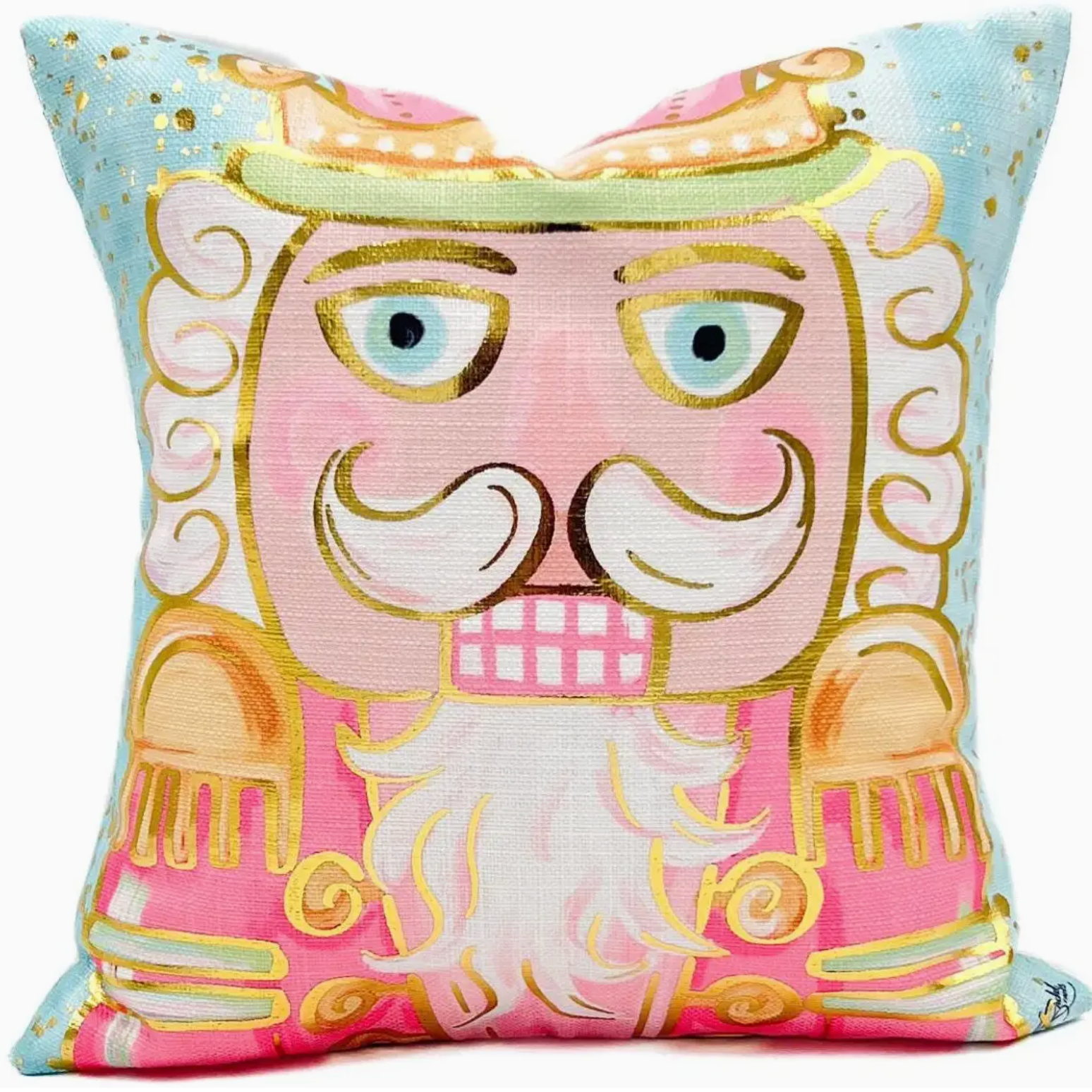 Gold Foil Mr. Nutcracker Pink and Mint Pillow