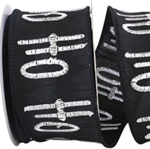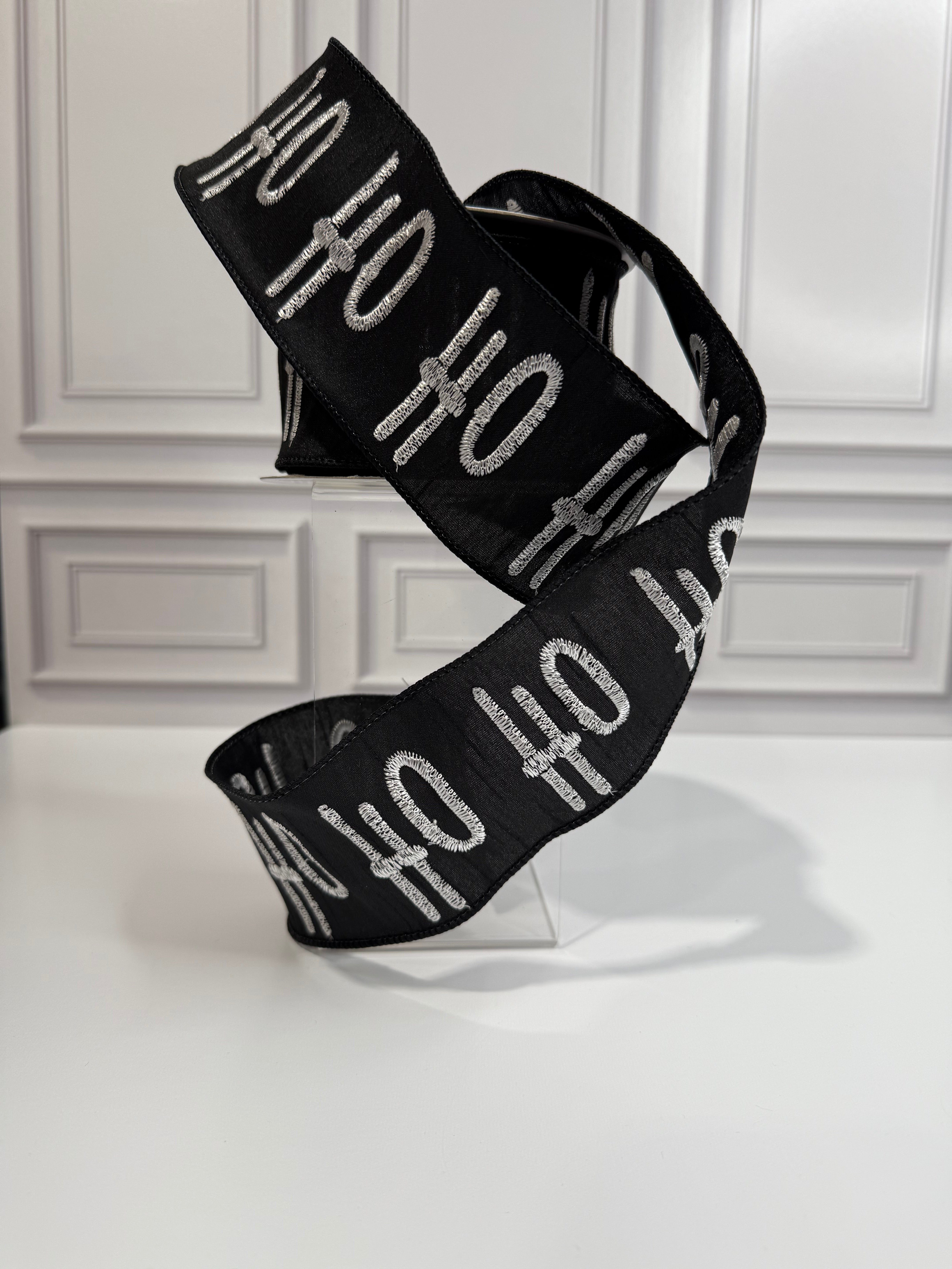 Ho-Ho-Ho Embroidered Dupioni Wired Edge Ribbon