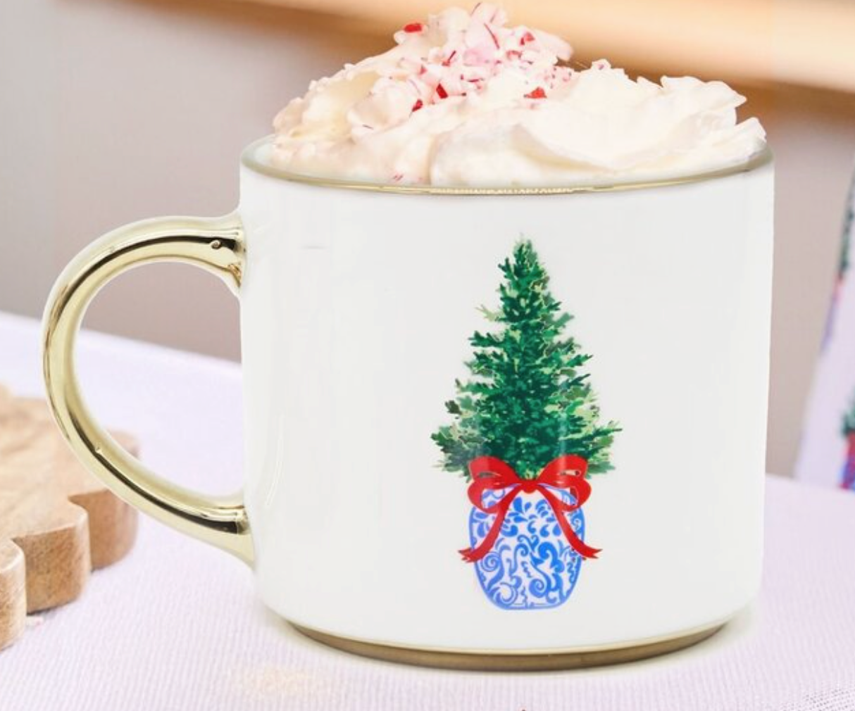 Stoneware Scalloped Platter with Trees & Gold Electroplating