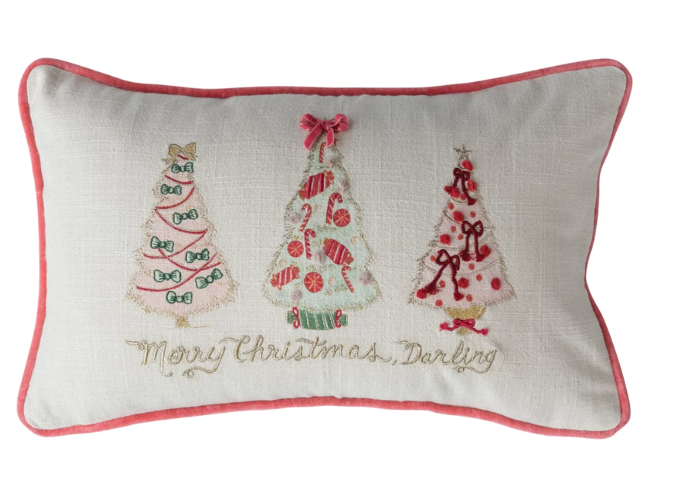 Lumbar Pillow with Christmas Trees, Embroidery, Piping & Velvet Back