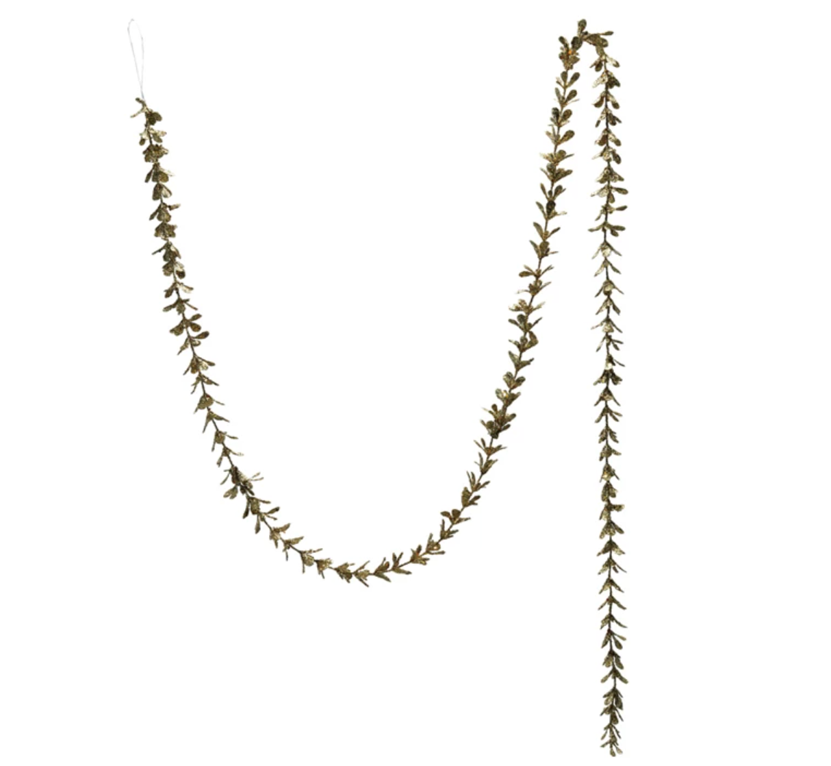 72"L x 1"H Faux Boxwood Garland with Gold Glitter Finish