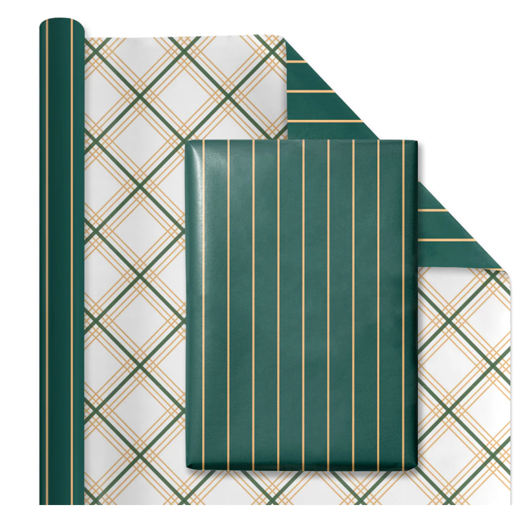 Gold on Green Pinstripe/Green and Gold Bias Plaid