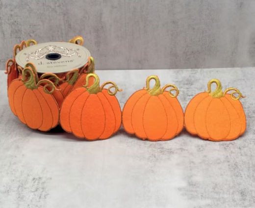 This 4-inch by 5-yard pumpkin garland ribbon features charming pumpkin shapes, perfect for adding a festive autumn touch to your decorations. Its length and width make it versatile for wrapping, crafting, or accenting seasonal displays, enhancing your fall-themed events.