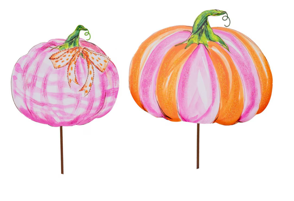 Brighten up your fall décor with these whimsical Pink & Orange Pumpkins from the Round Top Collection. Bursting with bold color and artistic flair, each metal pumpkin features hand-painted brush strokes and playful stem details—one in soft pink plaid with a festive bow, the other in vibrant orange with pink highlights for a candy-coated look. Sold separately, these cheerful pumpkins make a standout addition to porches, planters, tabletops, or seasonal vignettes with a twist of unexpected color.