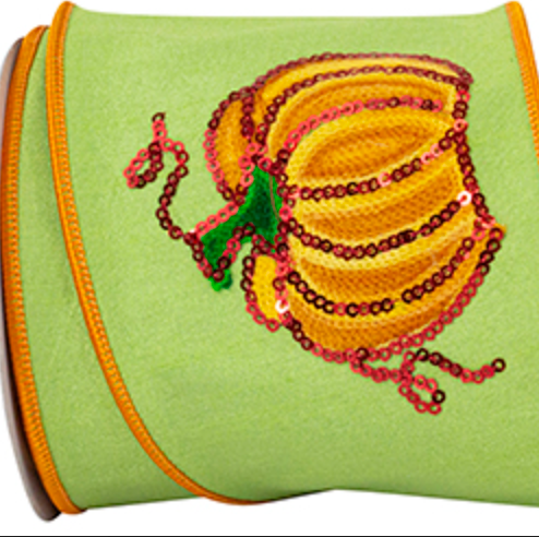 Pumpkin Sequin Deluxe Wired Edge Ribbon