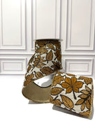 Sparkling Leaves Jacquard Gold Backed Wired Edge Ribbon