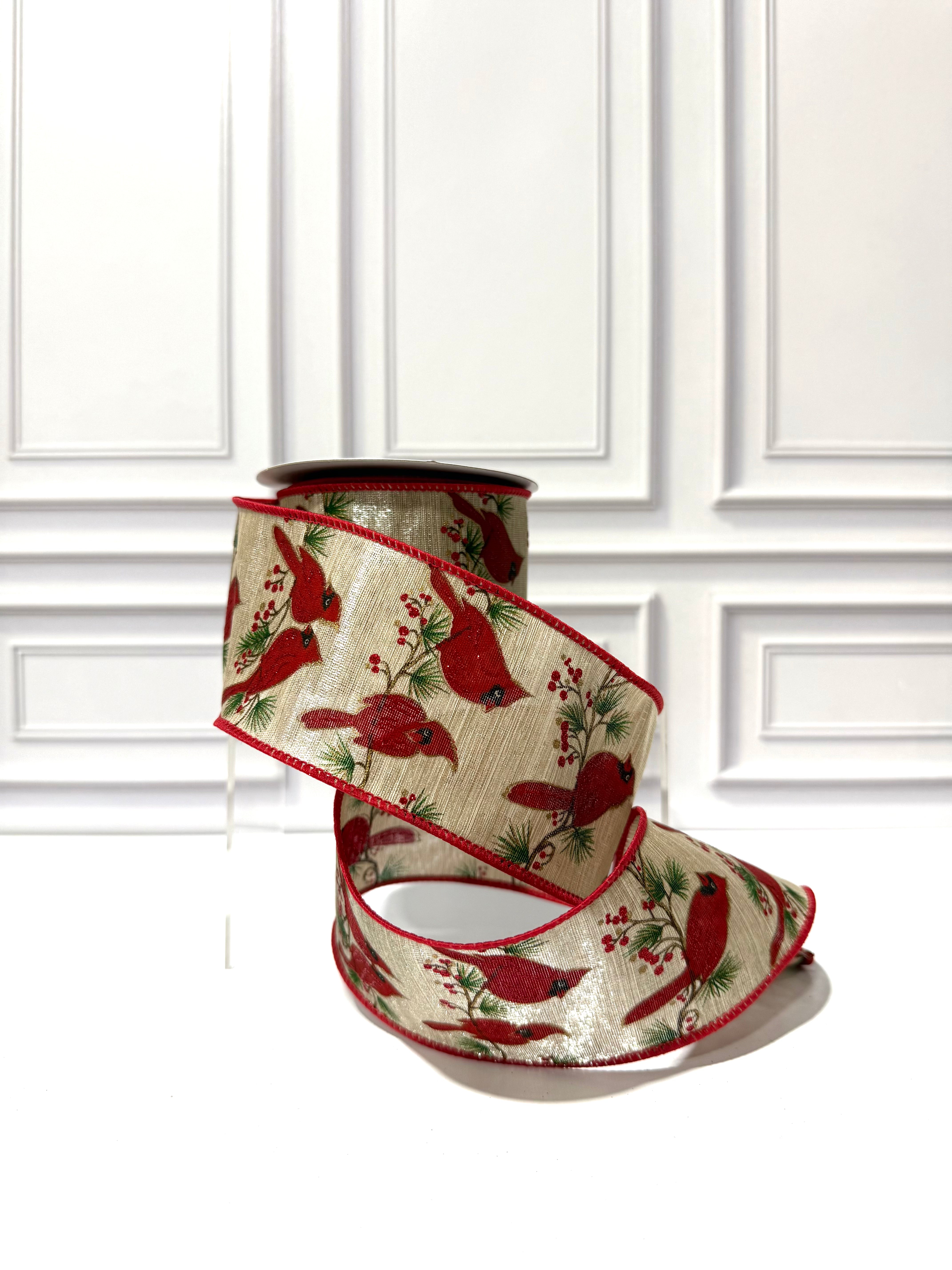Cardinals Wood Grain Natural Wired Edge Ribbon