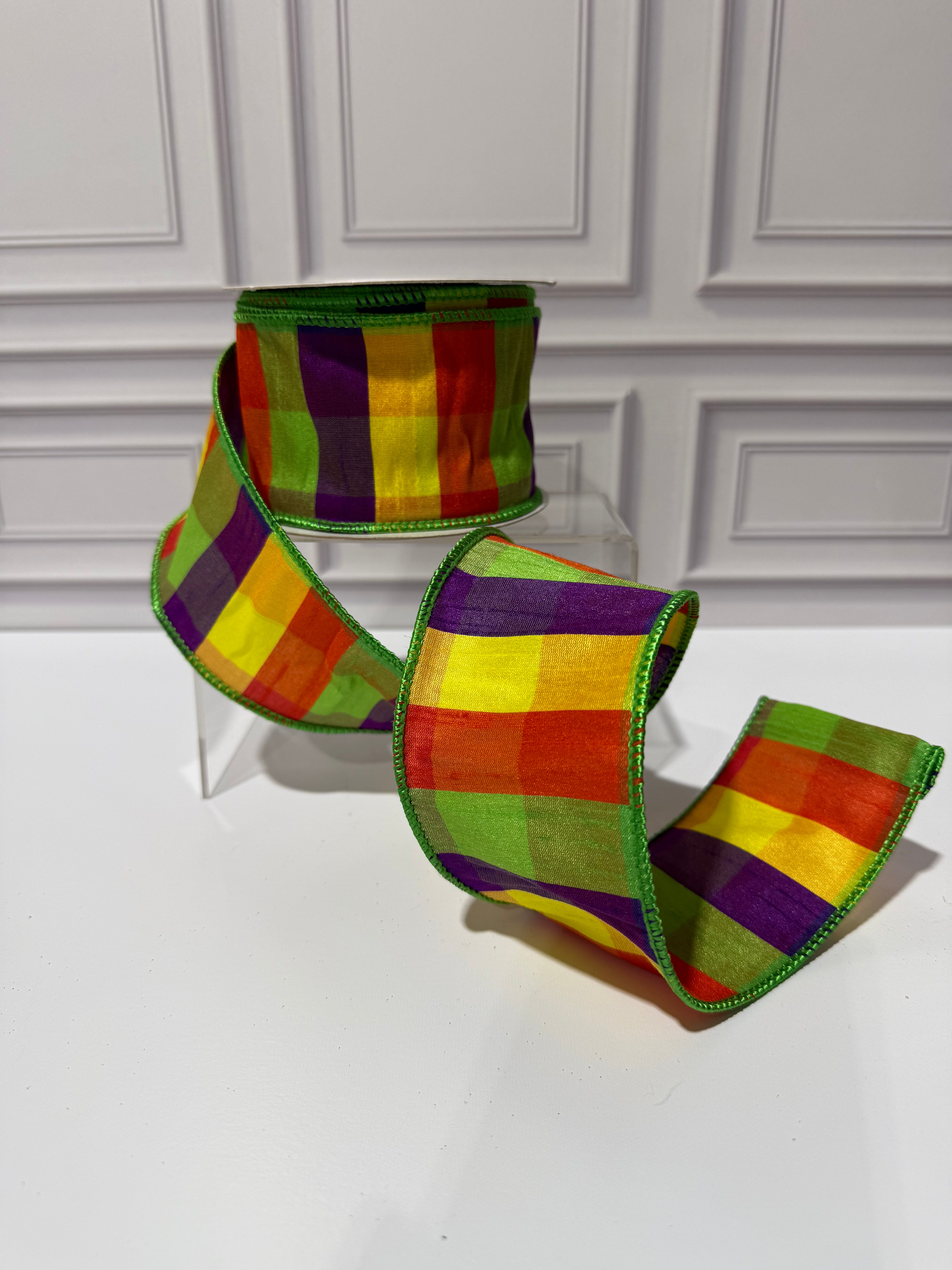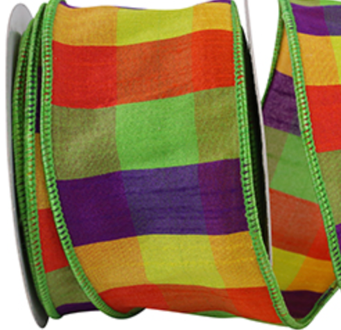 Check Dupioni Bright Grand Wired Edge Ribbon