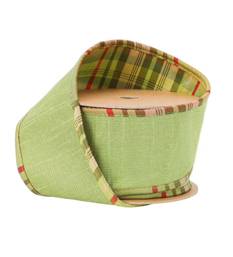 2 1/2" Wired Reversible Dupioni Ribbon Green Plaid