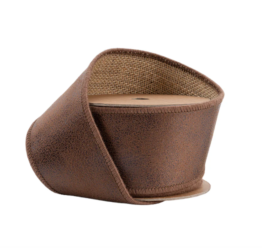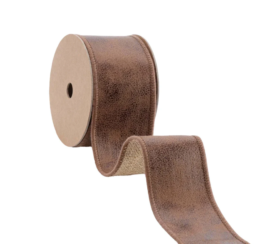 2 1/2" Wired Leather Ribbon | Brown w/ Jute Backing | 10 Yard Roll