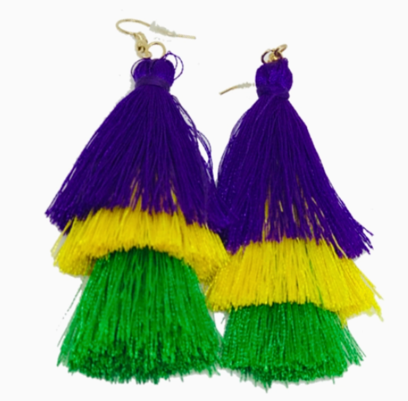 Purple, Green & Gold Tassel Earrings