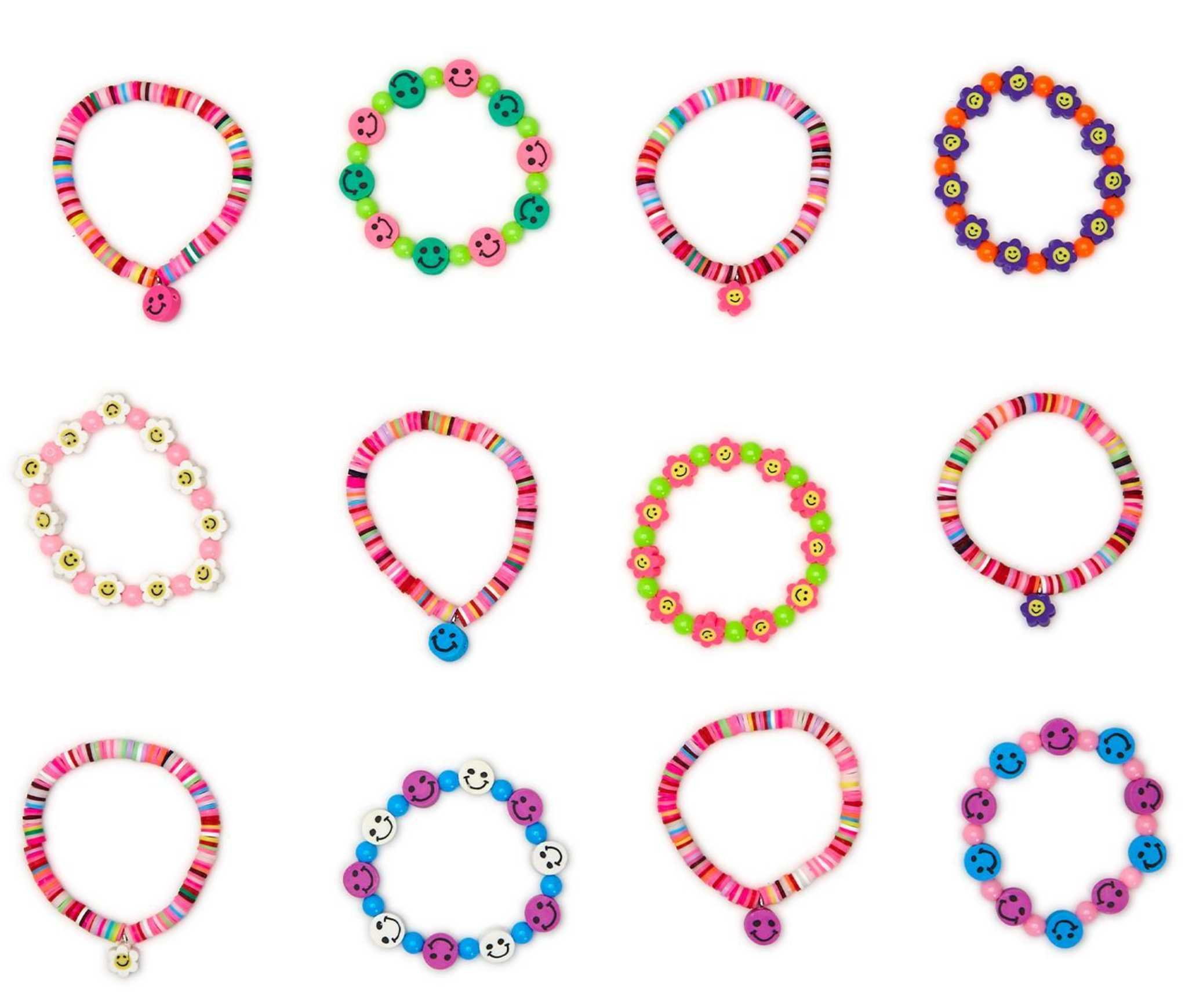 Set of 3 Peppermint Candy Elastic Bracelets on Gingerbread House Gift Box