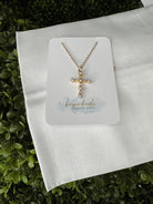 Elegant, timeless, and full of sparkle—the Gold Rhinestone Pearl Cross Necklace is a radiant statement piece. Featuring a classic gold-tone chain adorned with delicate faux pearls and a shimmering rhinestone-encrusted cross pendant, this necklace blends faith and fashion effortlessly. Perfect for layering or wearing solo, it adds a touch of grace to any outfit.