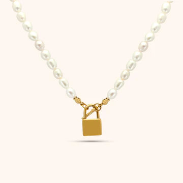 What we hold onto says a lot about who we are. The Keep Necklace blends classic pearls with a bold gold lock — equal parts softness and strength.