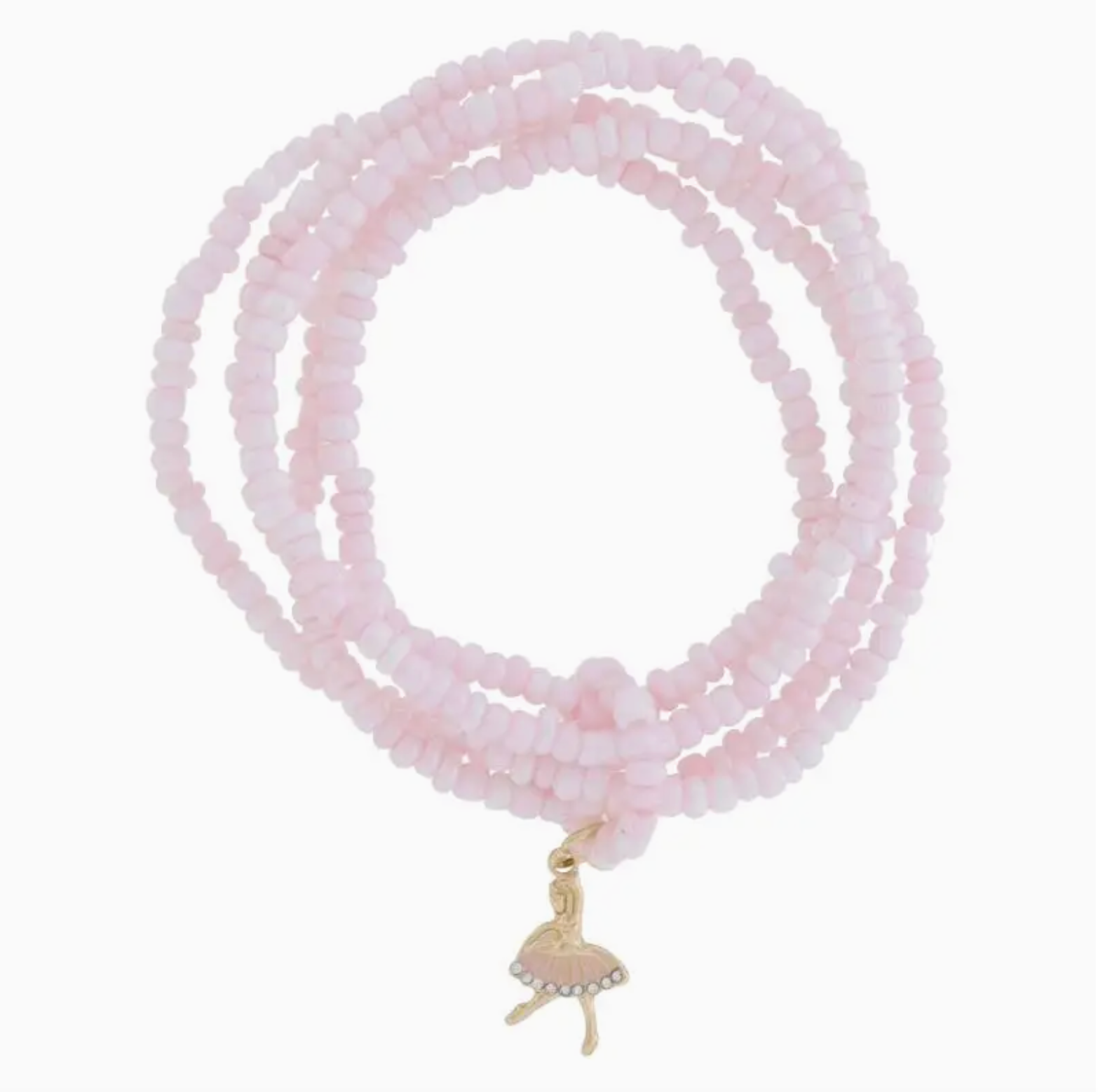 Kids 5 Strand Pink Beaded & Ballerina Bracelet, 6.5" Around