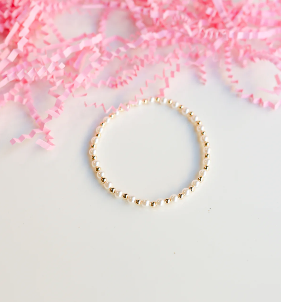 The Luci bracelet is 3mm beads + synthetic pearls.