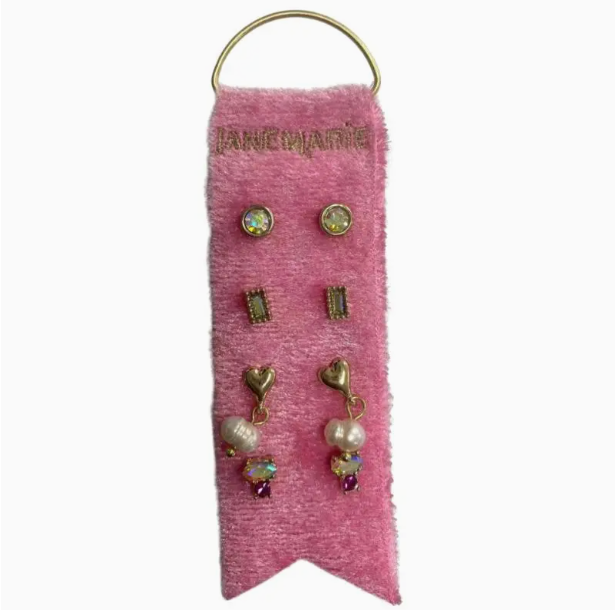 Marquis & Pink Crystal, Heart & Pearl Earrings Stud Set