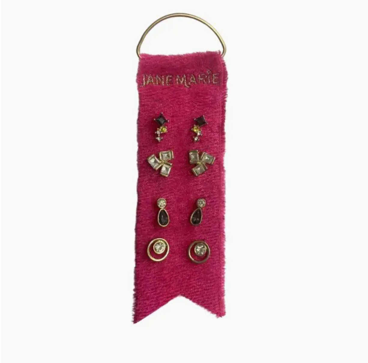 Trio Square Crystals, Black Teardrop Earrings Stud Set