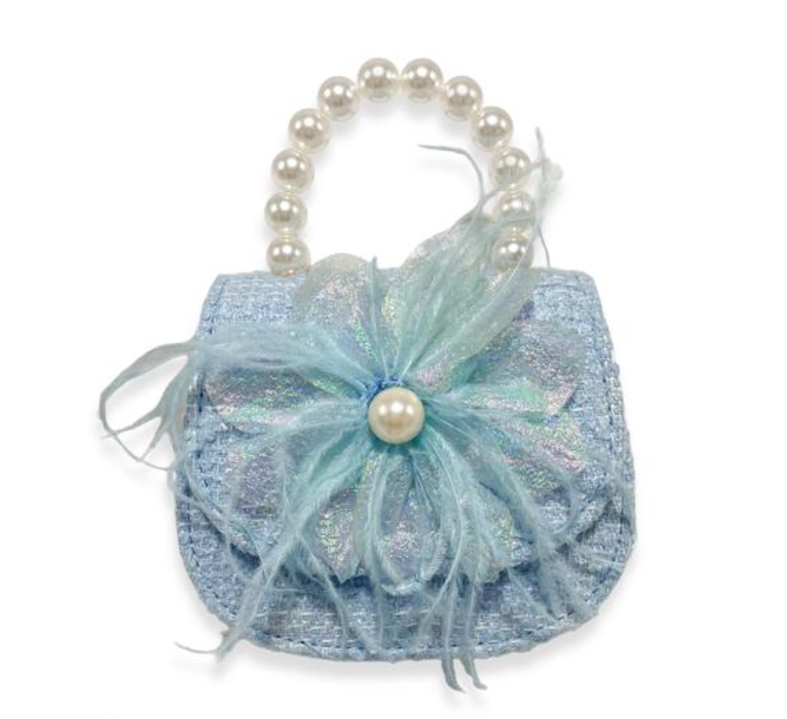 Blue Feather Floral Tweed Purse