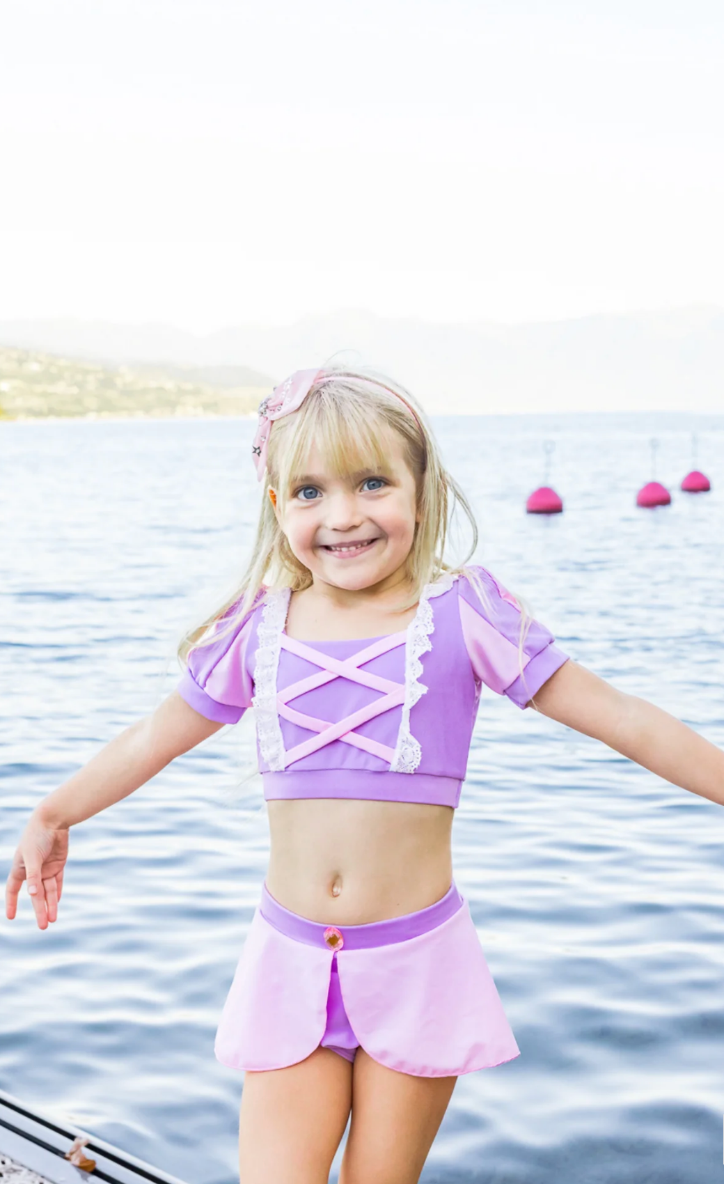 Introducing the enchanting Rapunzel Inspired Swimsuit for Kids, where fairytales come to life by the poolside! This captivating swimsuit is designed to make every little girl feel like a true princess as they dive into aquatic adventures.
