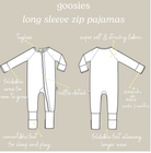 Our Zip Pajamas feature a two way zipper for easy diaper changes, convertible feet and scratch mitts for sizes 0-3 months and 3-6 months.