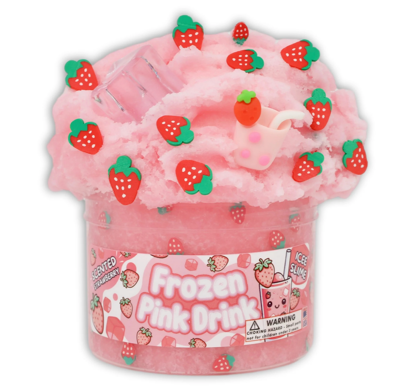 This best-selling pink icee slime is inspired by the popular drink and scented just like sweet strawberries. With a soft, dreamy texture and fun toppings like strawberry sprinkles, ice cube, and a pink drink charm; your hands will be sipping on this icee slime all day!