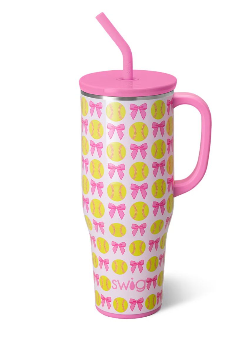 Mega sips, mega chill! 🧊 Hit like a girl and show your spirit with fun pink bows and bright yellow softballs! 🥎
