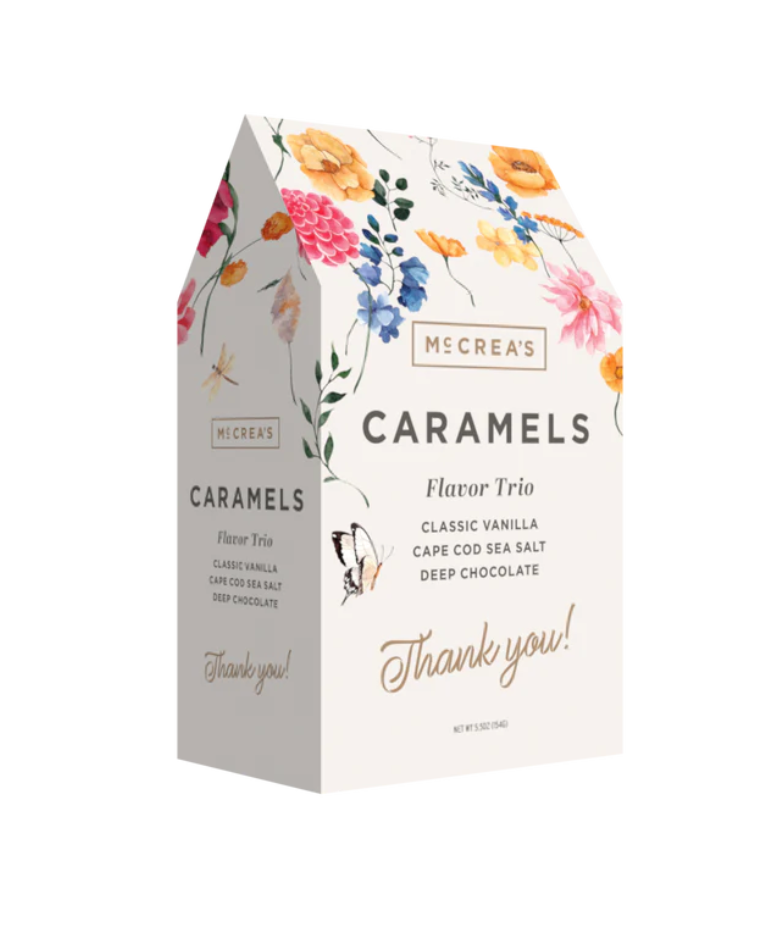 Express your gratitude in the sweetest way with McCrea’s Thank You Gable Box. Thoughtful and elegant, it’s the perfect token for teachers, gracious hosts, or anyone who deserves your appreciation. Inside, they’ll enjoy 15 indulgent caramels—five each of Classic Vanilla, Cape Cod Sea Salt, and Deep Chocolate—beautifully wrapped for a gift that’s as delightful to give as it is to receive.